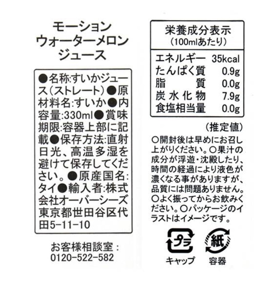 1位 モーション 100%ウォーターメロンジュース 330ml (お買得価格 190円)